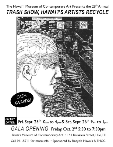 Come see the 28th annual Trash Art show on the main showroom of the museum! The show runs from October 2nd to October 28th. Founded and run by artist Ira Ono. Sponsored by Recycle Hawai’i and EHCC.