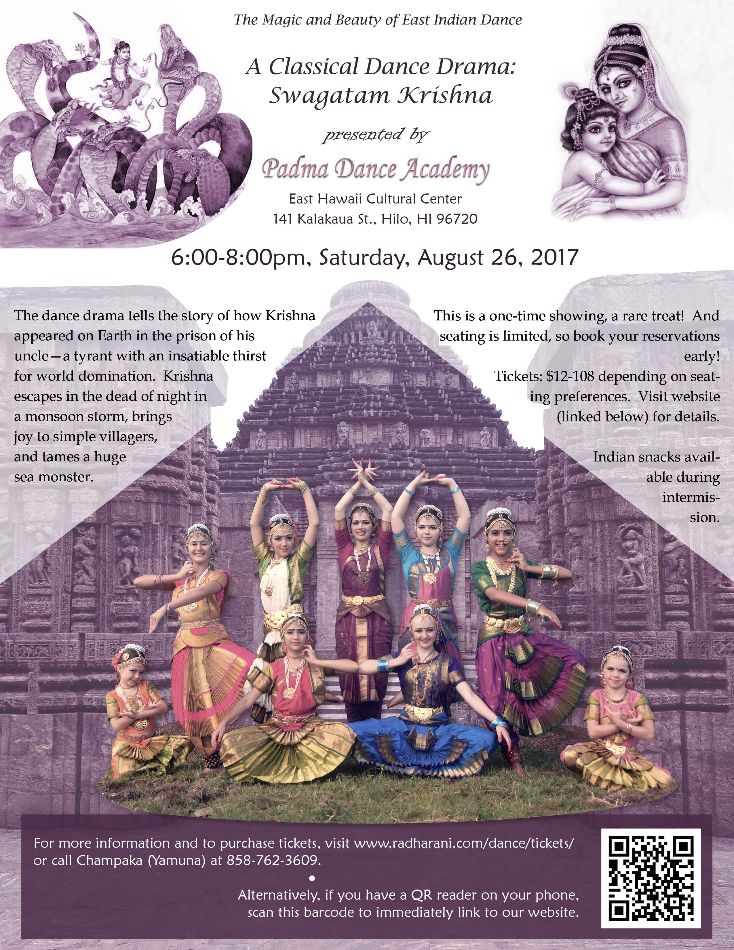 Krishna—at the East Hawaii Cultural Center, 6:00-8:00 pm, on Saturday, August 26, 2017.