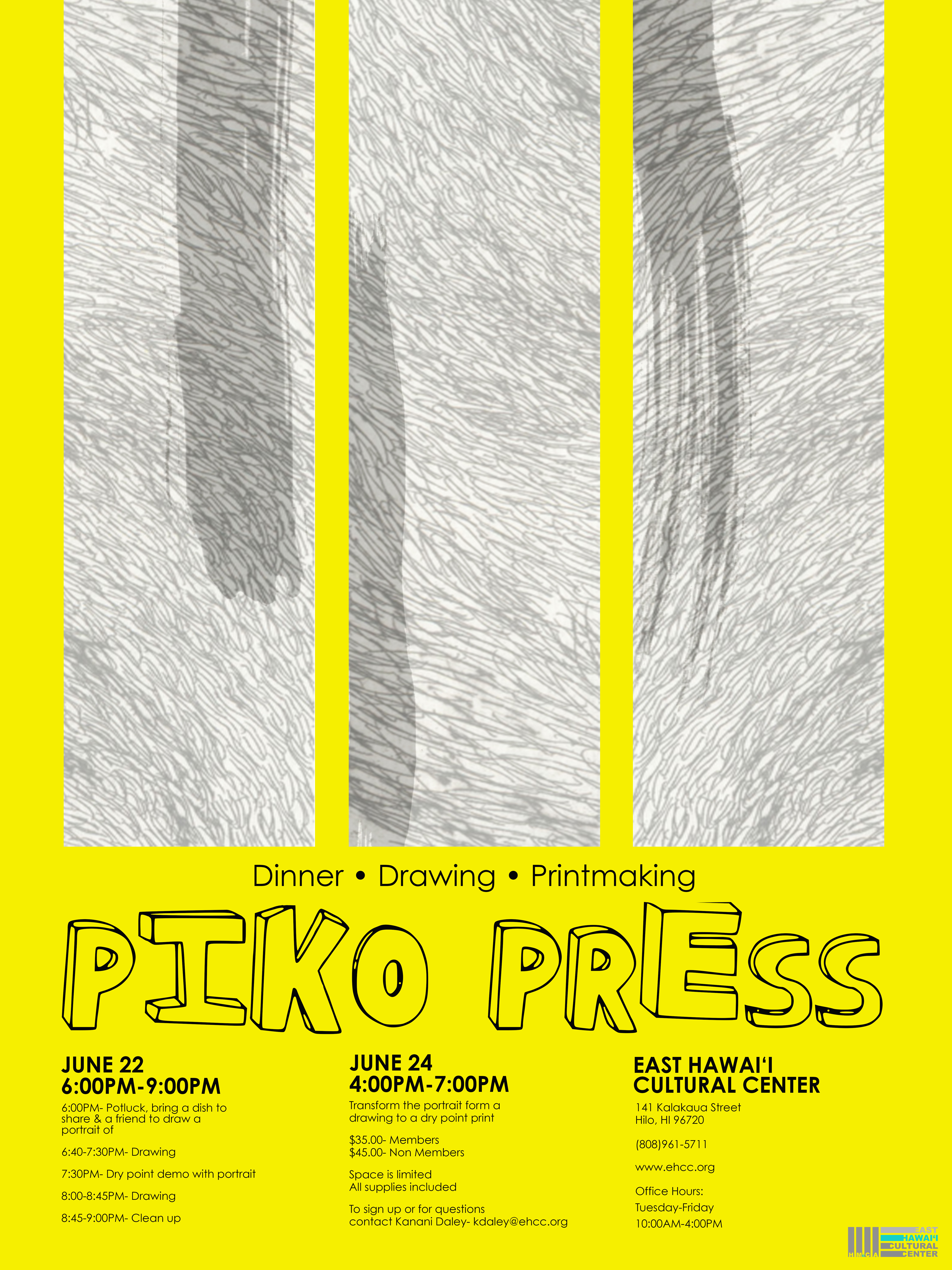 - 7:30PM: Drypoint demo with portrait.
