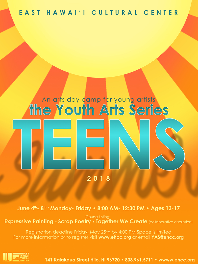 Program type Workshop Dates Monday, June 4, 2018 - 08:00 - Friday, June 8, 2018 - 12:30 CANCELED DUE TO LOW ENROLLMENT- BUT WE'VE RAISED THE AGE LIMIT FOR OUR REGULAR SUMMER SESSIONS- PLEASE CHECK IT OUT HERE. Poster & Flyer
